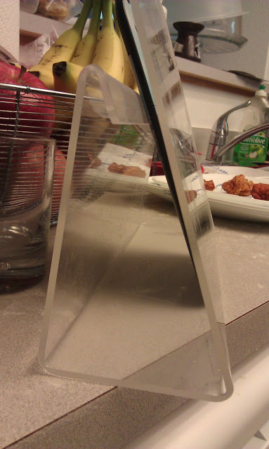 So I went in search of one online. Seriously, there are more cookbook holders in this world than I could have ever dreamed. From glass wooden, to fancy metal, to delicate glass, you have you pick. Wood? Nah not my style. Metal? Too many crevices to clean. Glass? Are you kidding me?