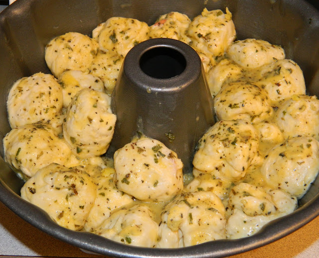 Mix the butter, garlic and herbs. You can do this in the microwave in a heat safe measuring cup or over the heat in a pan. Melt thoroughly. Brush the inside of the pan with this lightly.