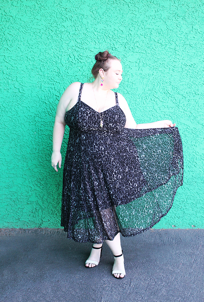Leopard Midi Dress, Belt Bag, & Faux Leather Moto Jacket with Glam Edgy Vibes Plus / Curvy Styling on Home in High Heels ( Torrid & Thrifted)